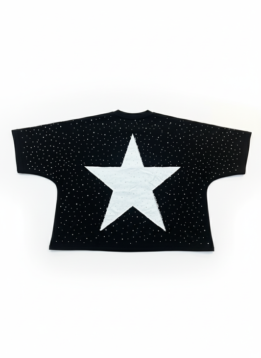 Black Rhinestone Cropped Tee
